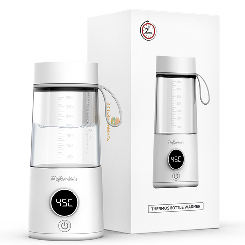 The MyBambini's Thermos Bottle Warmer™ is perfect for days out - it's portable, fast, and Its compact size and battery-powered operation make it easy to carry and use anywhere. It's a convenient solution for warming your baby's bottle while on the go.